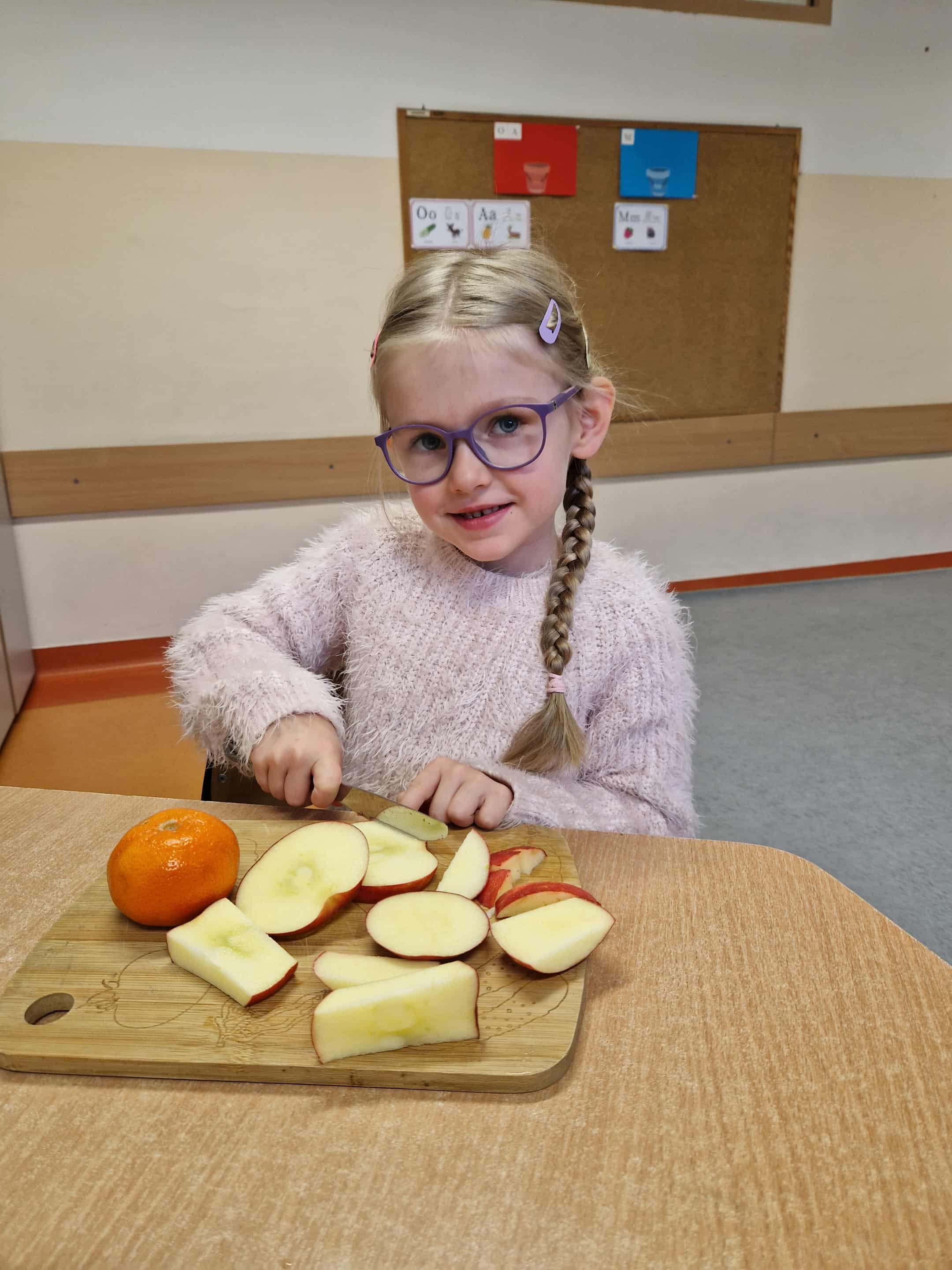 W ramach promowania zdrowego stylu życia przedszkolaki obchodziły Dzień Owoców i Warzyw. Każde dziecko przygotowało swoją kolorową i smaczną sałatkę, samodzielnie krojąc i komponując składniki. Zajęcia były świetną okazją do rozwijania samodzielności i rozmów o zdrowym odżywianiu (→foto., →foto., →foto.).