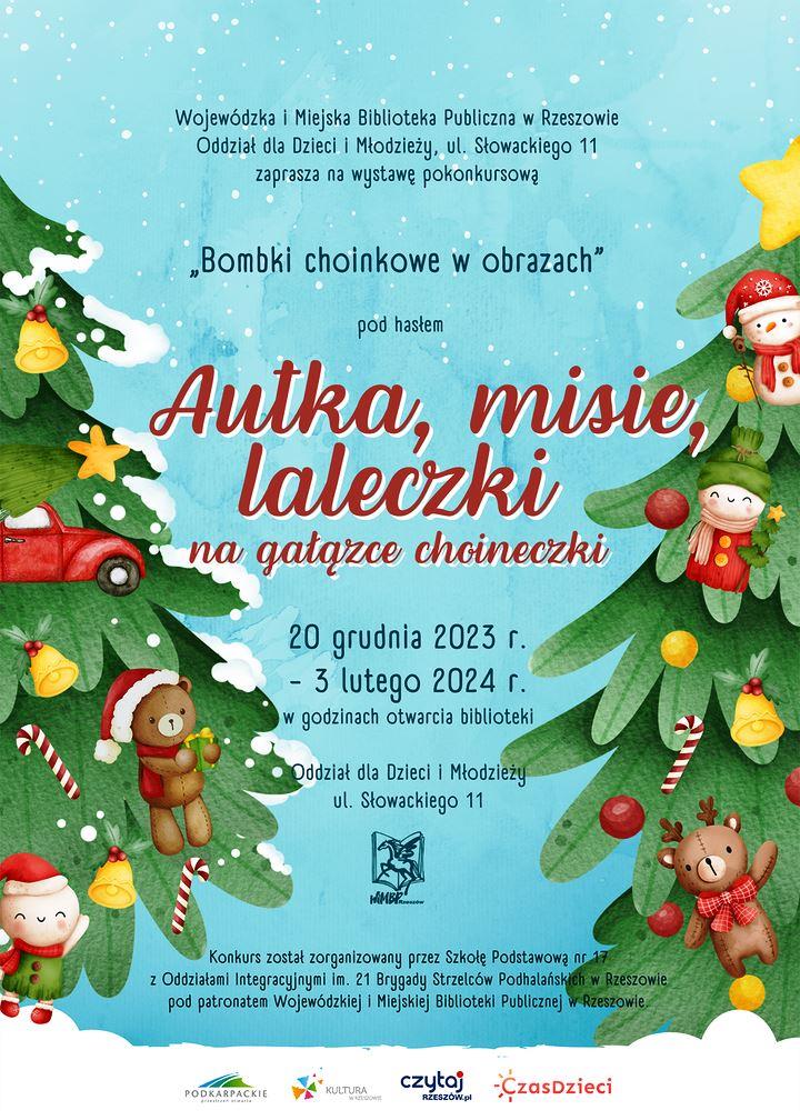20 grudnia 2023 r. w Wojewódzkiej I Miejskiej Bibliotece Publicznej w Oddziale dla Dzieci i Młodzieży zostały wręczone nagrody w XII Międzyszkolnym Konkursie Plastycznym „Bombki choinkowe w obrazach” pod hasłem „Autka, misie, laleczki na gałązce choineczki” pod Patronatem WiMBP w Rzeszowie.