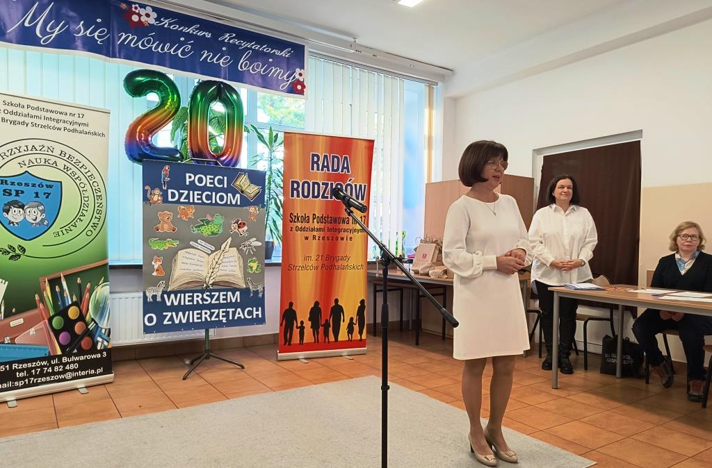 Jury w składzie: p. Barbara Filip - Dyrektor SP 17, p. Beata Zienkiewicz – Kulikowska - przedstawiciel Rady Rodziców oraz p. Magdalena Czernia - przedstawiciel Księgarni Nowa Duo w Rzeszowie dokonało oceny prezentowanych recytacji. Punktacji podlegały: recytacja, praca plastyczna oraz ogólny wyraz artystyczny.