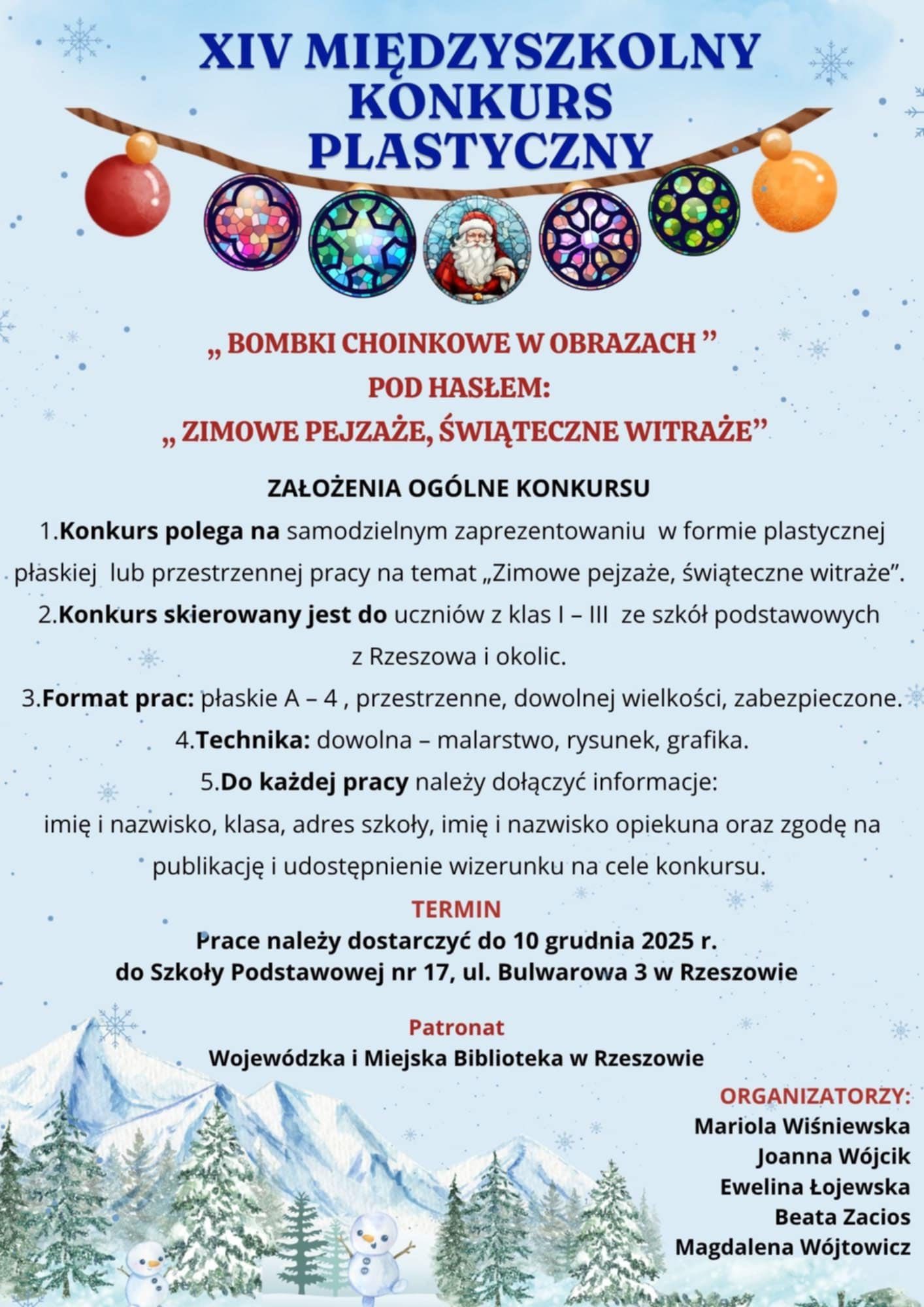 Prace należy przesyłać do 23 stycznia 2026 r. na adres naszej szkoły - organizatora konkursu.