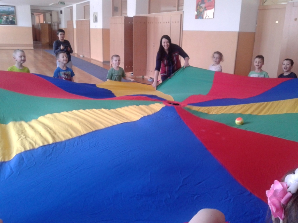 3.04 - zabawy z chustą Klanzy w ramach "Tygodnia zdrowia" (→foto.)