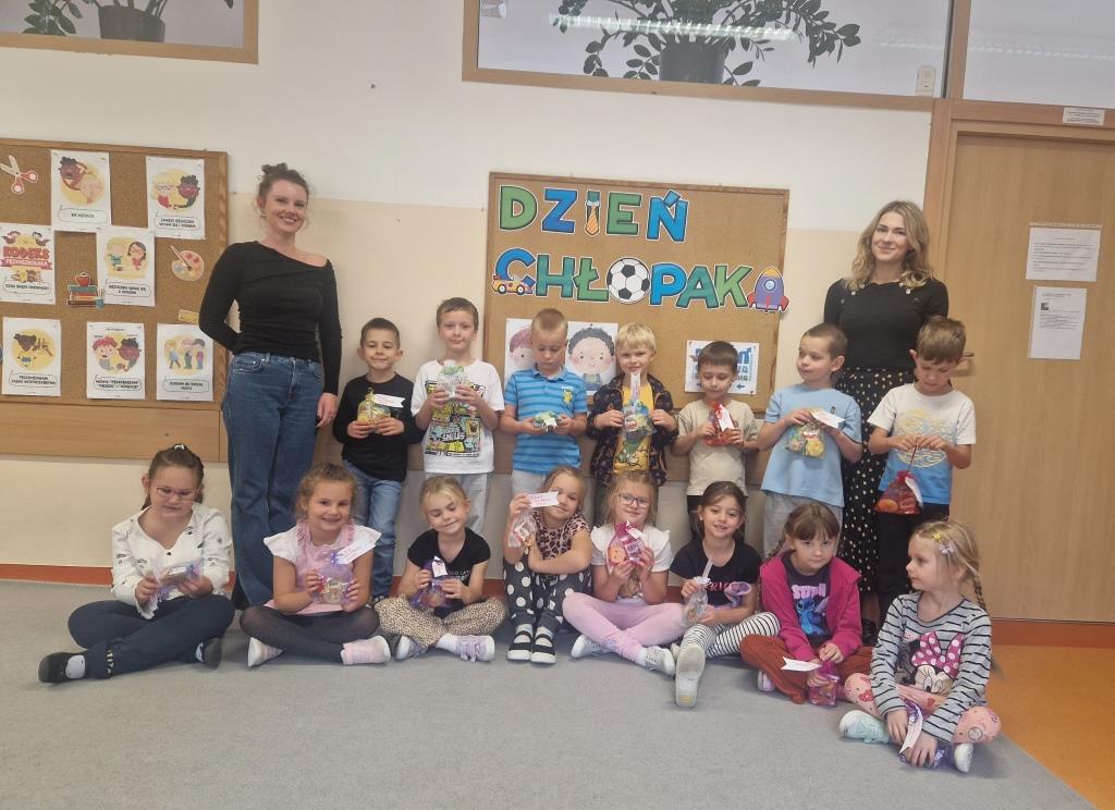 Ostatniego dnia miesiąca obchodziliśmy Dzień Chłopaka (→foto.). Dziewczynki z radością wręczyły upominki swoim kolegom z klasy oraz poczęstowały ich słodkościami (→foto.).