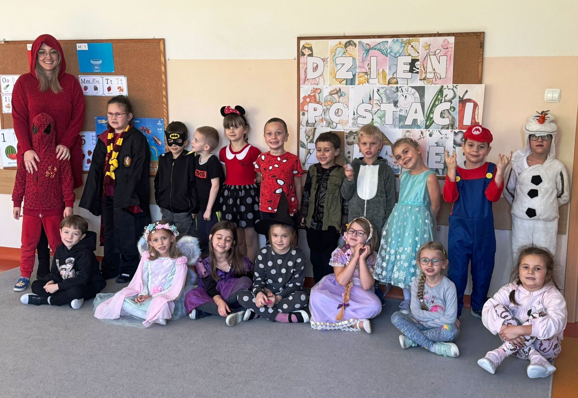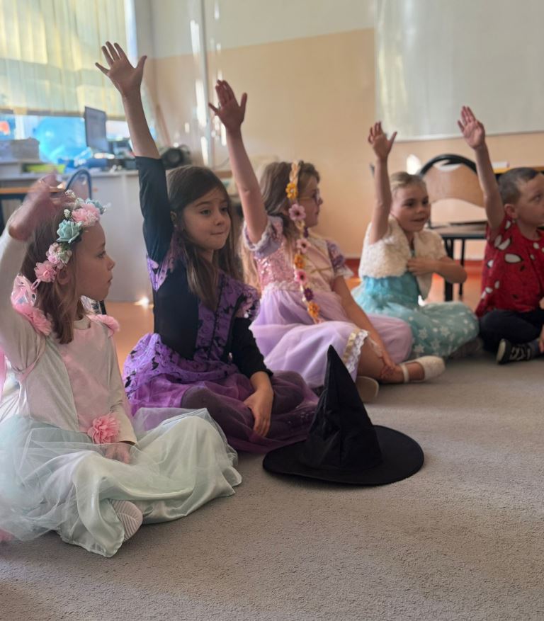 Listopad rozpoczęliśmy od świętowania Międzynarodowego Dnia Postaci z Bajek, nasi zerówkowicze przebrali się za ulubione postacie i zaprezentowały stroje na klasowym pokazie.