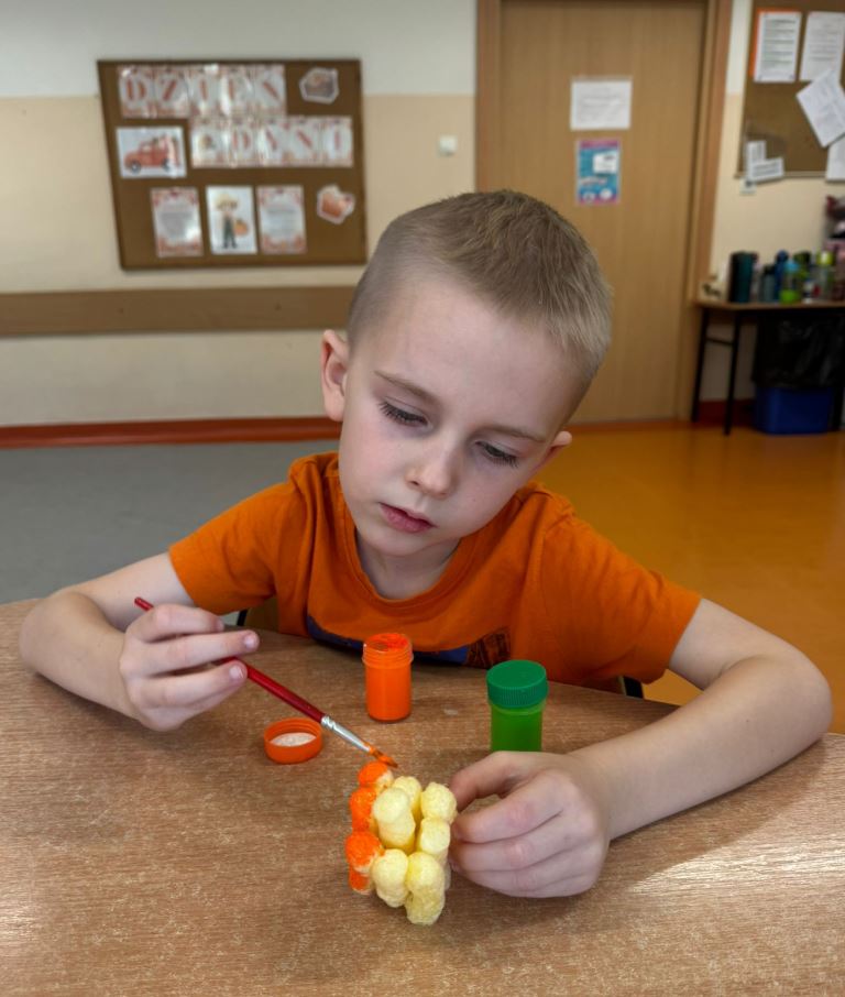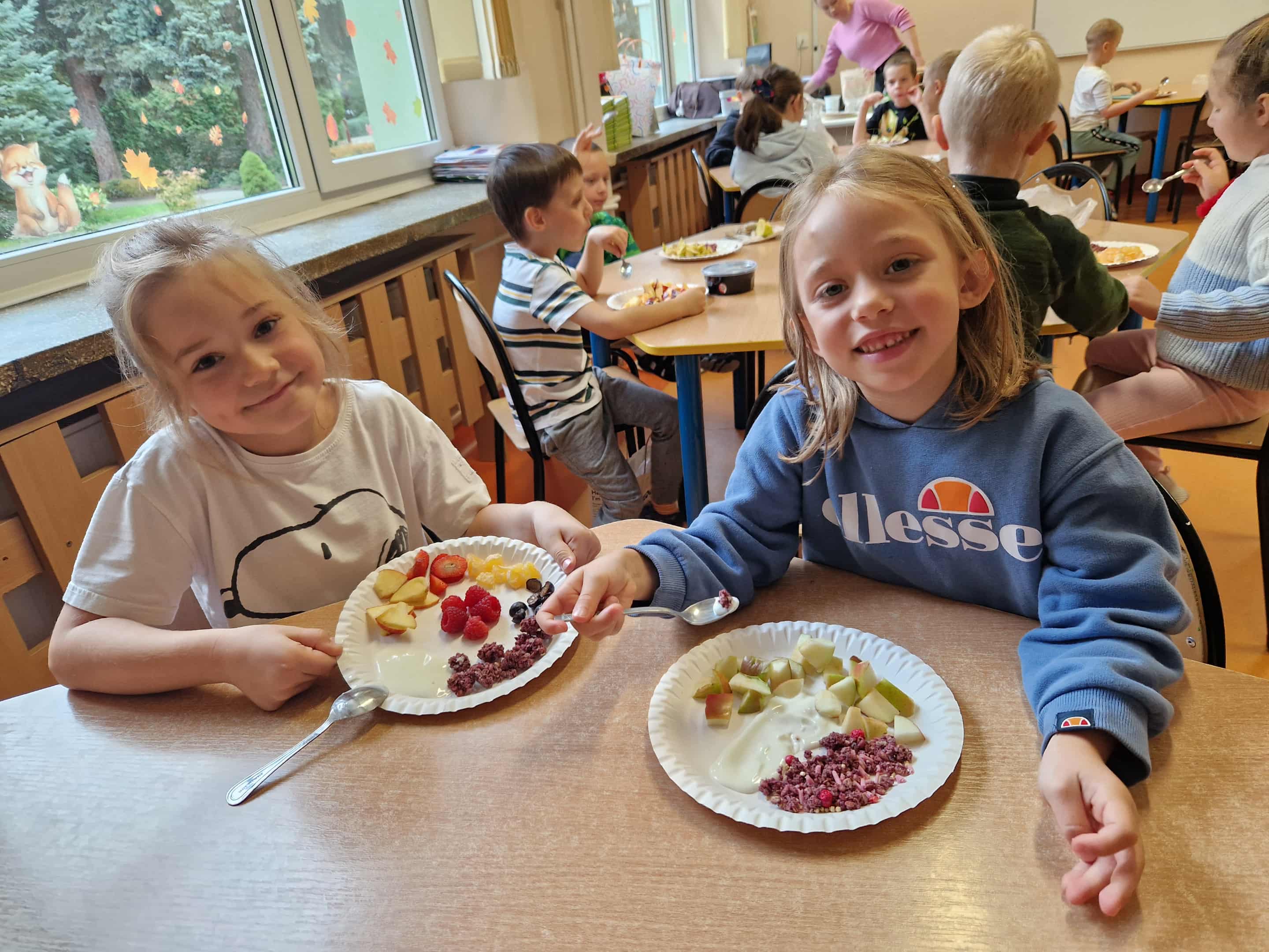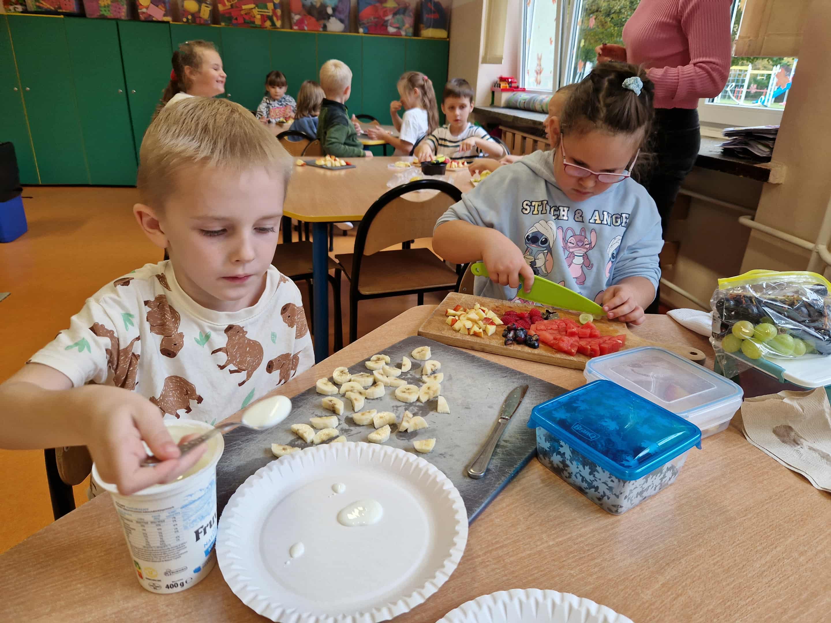 W ramach promowania zdrowego stylu życia przedszkolaki obchodziły Dzień Owoców i Warzyw. Każde dziecko przygotowało swoją kolorową i smaczną sałatkę, samodzielnie krojąc i komponując składniki. Zajęcia były świetną okazją do rozwijania samodzielności i rozmów o zdrowym odżywianiu (→foto., →foto., →foto.).