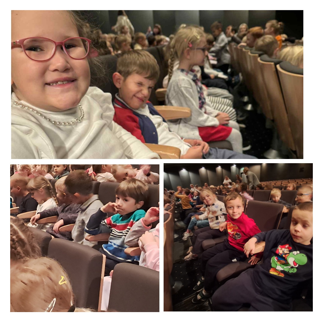 Październik był dla dzieci miesiącem pełnym atrakcji, nowych doświadczeń i wspaniałej zabawy. Na początku miesiąca dzieci wybrały się do Teatru Maska, gdzie obejrzały piękny spektakl „Calineczka”. Przedszkolaki z dużym zainteresowaniem śledziły losy głównej bohaterki, a wizyta w teatrze była dla wielu z nich prawdziwą artystyczną przygodą (→foto.).