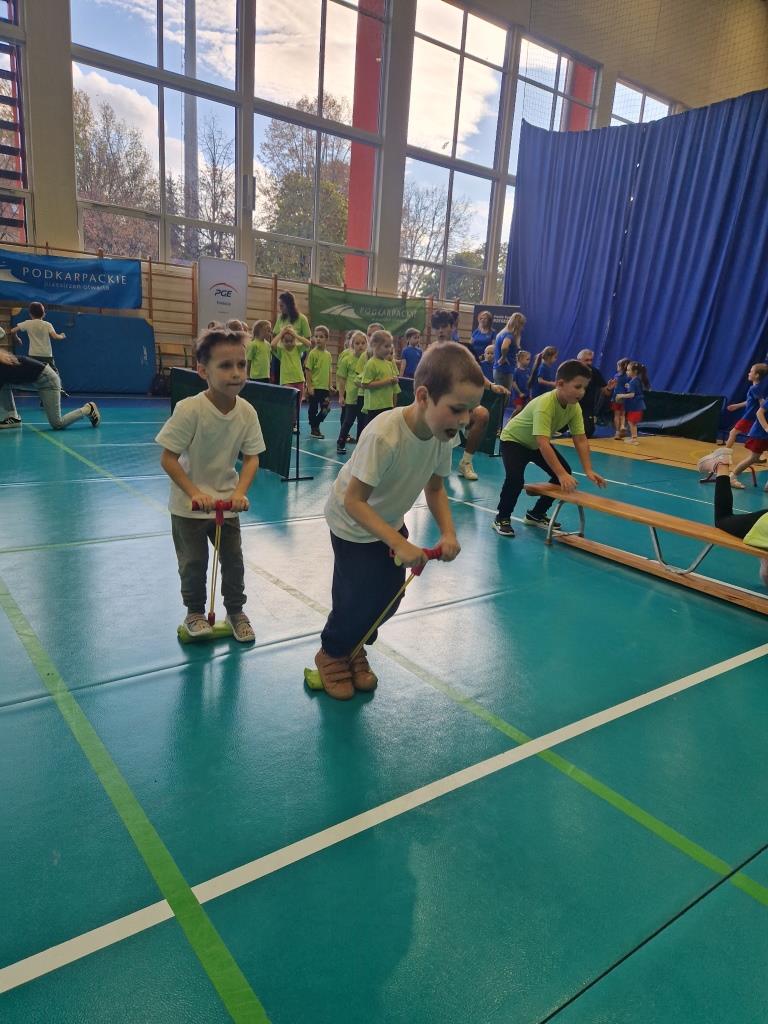 Dzieci wzięły udział w sportowej Olimpiadzie Przedszkolaka (→foto., →foto.). Czekały na nie różnorodne konkurencje ruchowe, w których każdy mógł wykazać się sprawnością i zaangażowaniem (→foto., →foto.). Na zakończenie mali sportowcy otrzymali medale i dyplomy, co wywołało wiele radości i dumy.