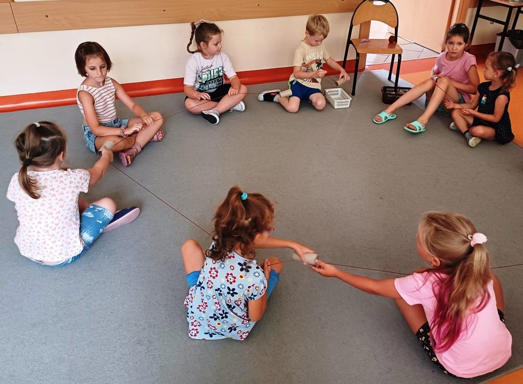 Wrzesień dla naszych zerówkowiczów był intensywnym miesiącem. W jego pierwszych dniach spędzaliśmy sporo czasu na dworze, aby lepiej się ze sobą poznać i zintegrować (→foto.).